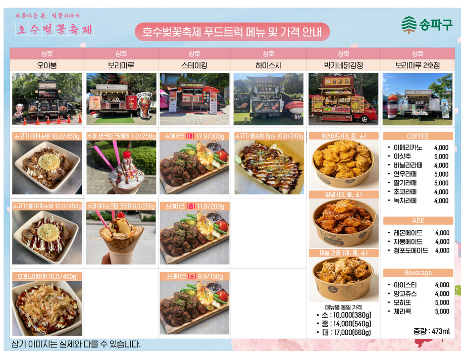 - 행사장소: 석촌호수 동호 수변무대 및 주변 일대