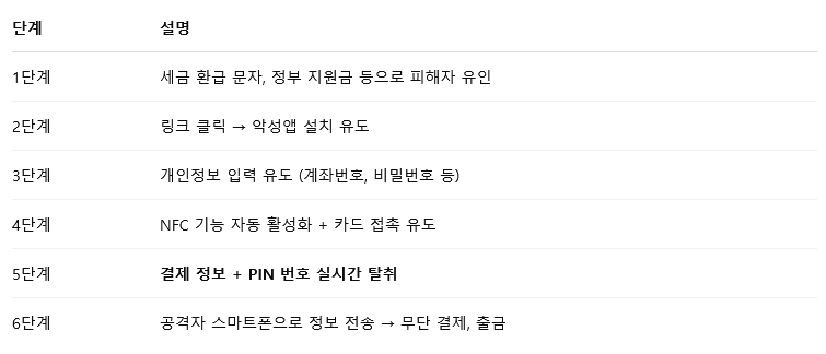 요즘 같은 시기에 이런 문자를 받으면, 많은 이들이 반가운 마음으로 클릭하게 됩니다. 하지만 바로 그 순간, 스마트폰 안에 조용히 침투하는 악성앱 하나. 이 앱은 우리의 NFC 결제 정보, 카드 정보, PIN 번호까지 훔쳐 공격자에게 실시간으로 전달합니다.