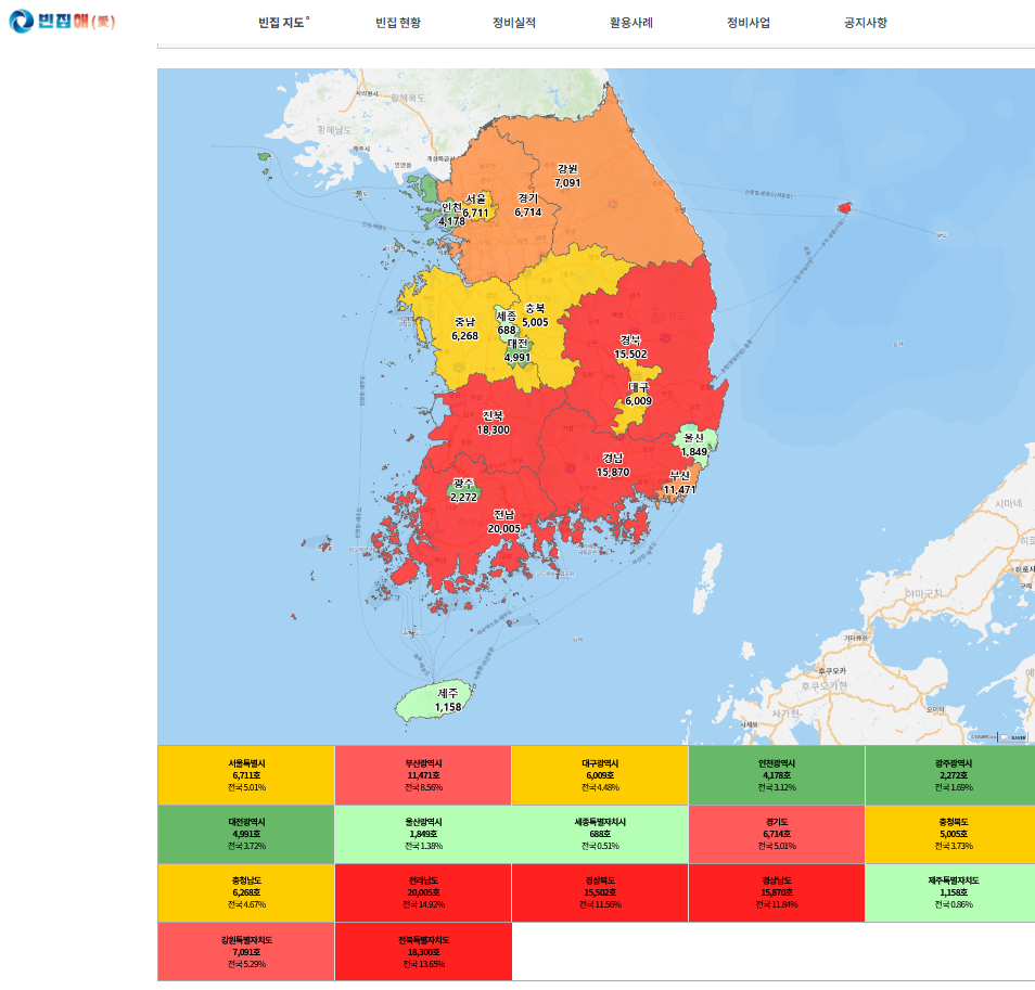 전국 빈집 현황과 지도